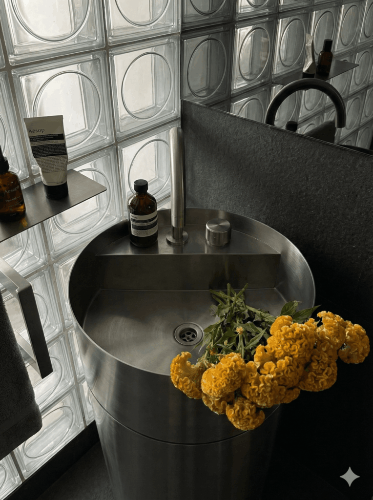 Explore a curated collection of visuals from Urban Vista—showcasing sculptural basins, gun-metal fittings, and the interplay of light and texture. Each image highlights the project’s modern industrial character and inspires new possibilities for expressive bathroom design.